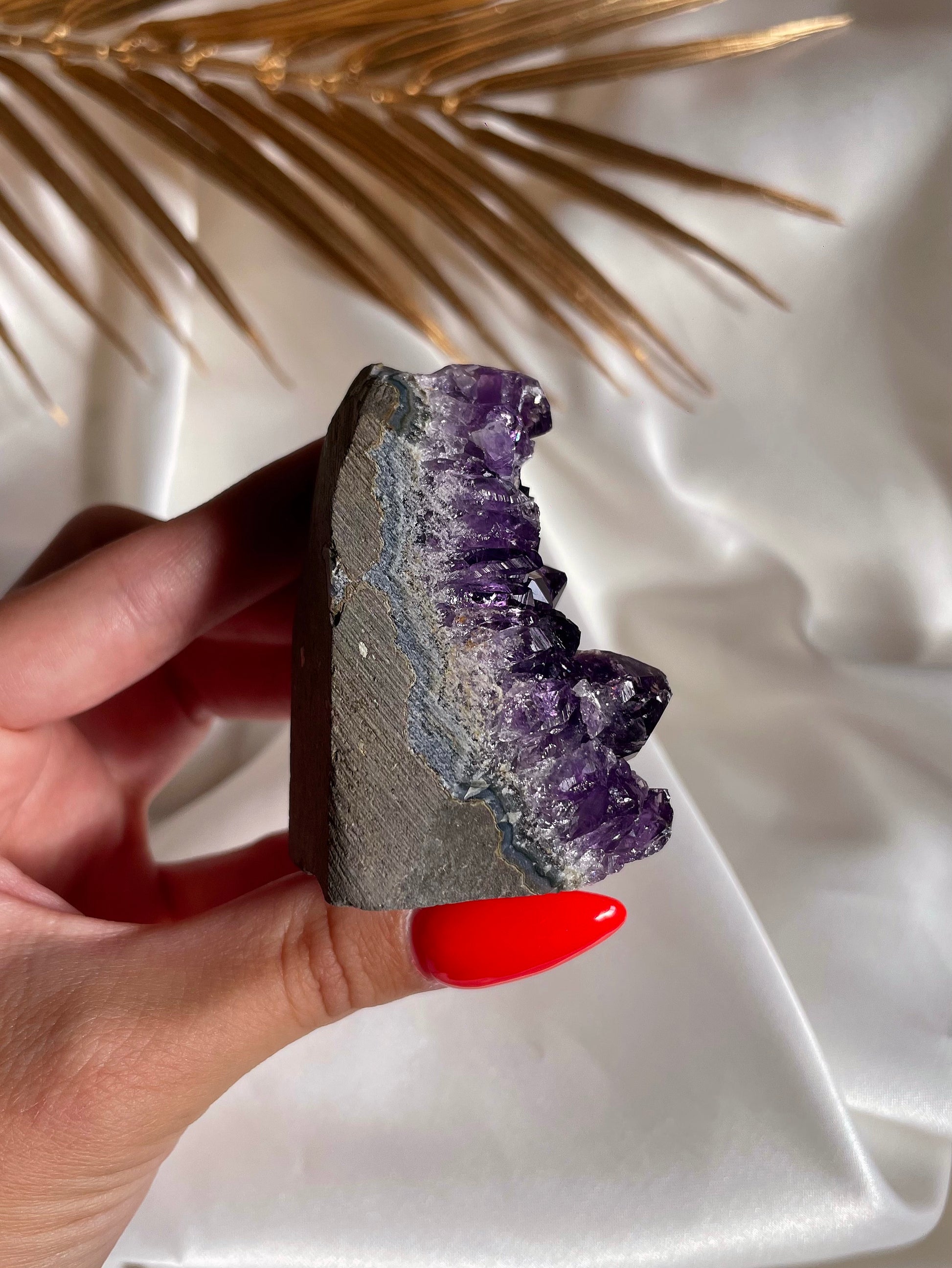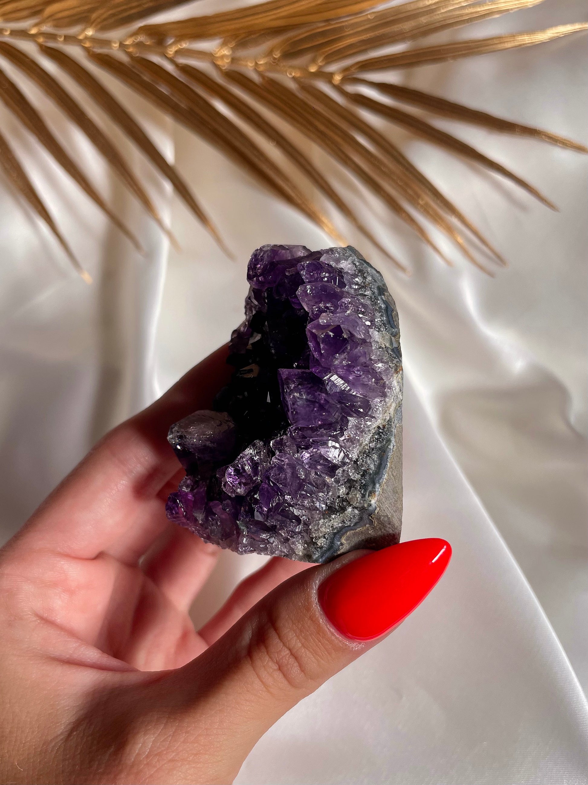 En lithothérapie, l'améthyste apporte calme et sérénité, favorise l'équilibre émotionnel et spirituel, et protège contre les énergies négatives. Utilisez-la pour la méditation et profitez de ses propriétés naturelles purifiantes. Un must-have pour votre bien-être.