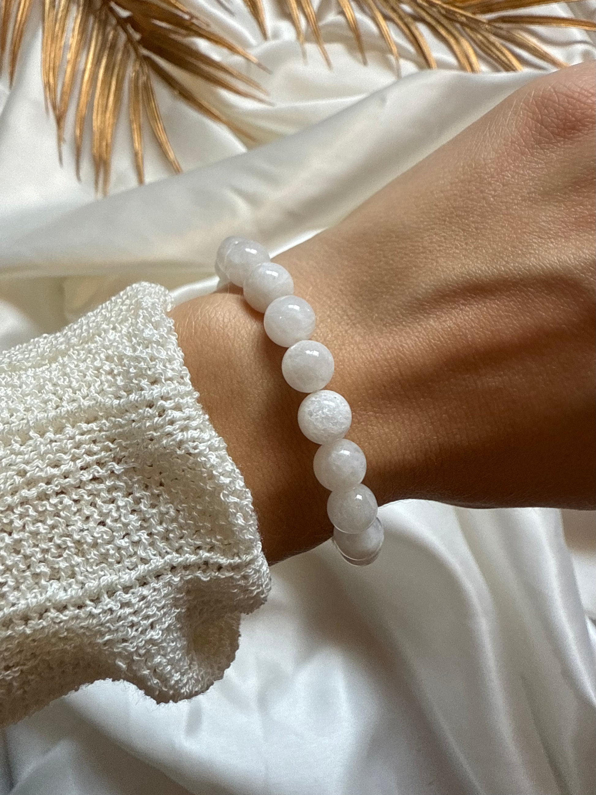 La pierre de lune, symbole de féminité et de passion, captive en un regard. Très appréciée des femmes depuis la nuit des temps, elle est synonyme d'intuition et de maternité. D'un blanc étincelant, la pierre de lune est également associée à l'amour, la douceur et la tendresse.